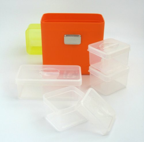 Join the green lunch club! The Oots! Deluxe Lunch Kit has everything you need to start eating lunch in a way that cuts out waste, leaves out harmful chemicals, and adds in a touch of stylish Dutch design savvy. The Oots! Deluxe Lunch Kit contains an innovative orange Oots! Lunchbox container, one clear large internal container, and four clear small internal lunch containers for the versatility to pack any lunch you want. This eco-friendly reusable lunch kit will encourage healthy homemade lunches, discourage wasteful disposables, and will comfortably accommodate a lunch of any complexity. Perfect for you or a friend who is looking to be greener, the Oots! Deluxe lunch kit contains plastics that are always BPA free, phthalate free, and dishwasher (top rack) safe.